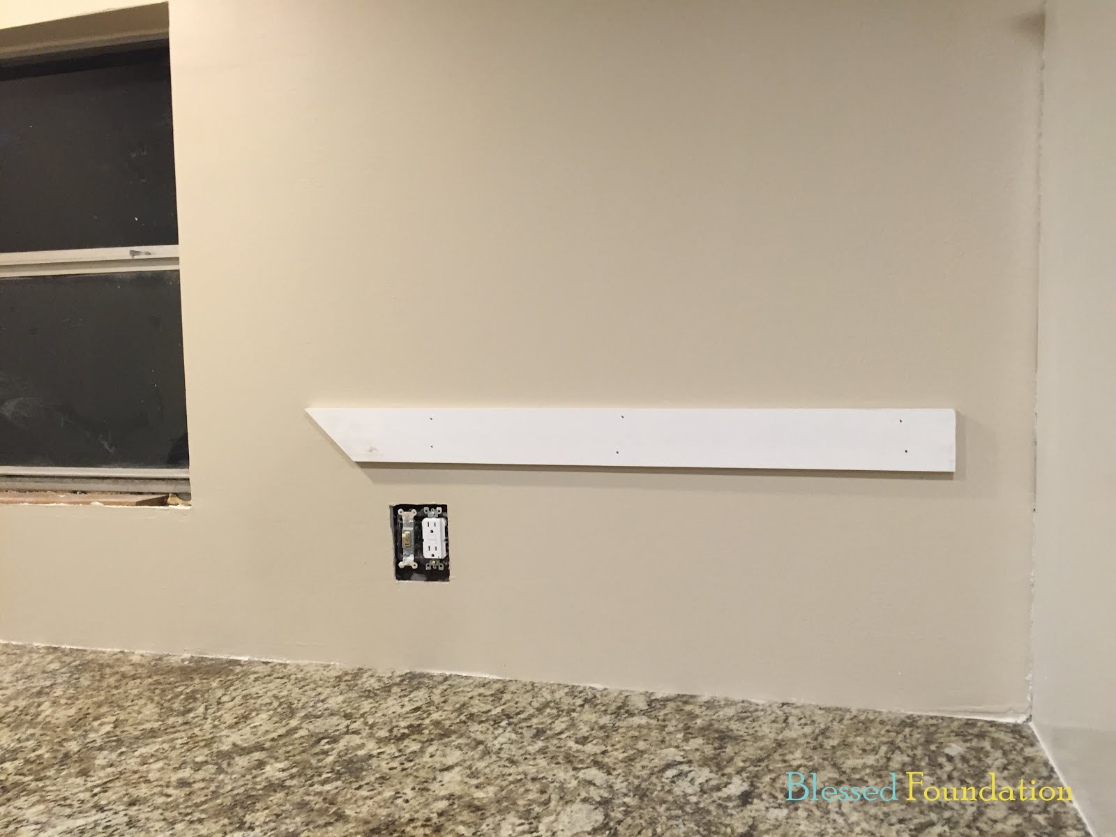 To hang up the boxes, we marked where we wanted them on the wall and then screwed in a board at that height. This gave the box a place to rest while I held it against the wall and Alan screwed it in. (Remember, we raised the cabinets about four inches! This part really made a difference to me!)